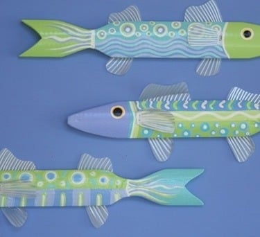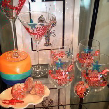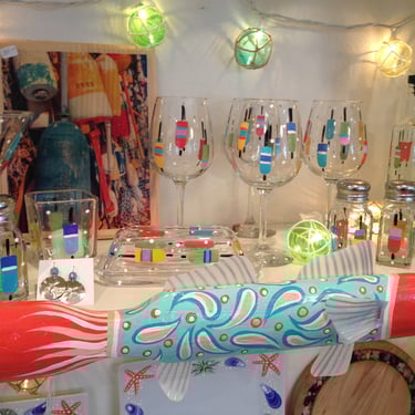 She first began her business under the name Wild Lupine Farm, where she combined her painterly style with functional art, creating hand-painted glassware that quickly found a following. As her work continued to grow, Lydia expanded into playful and imaginative coastal pieces, including her well-known colorful picket fence fish and whimsical rock fish collages.